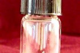 .5 ounce glass sample bottle measures 1″ x 1/2″ in size.