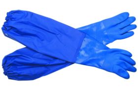 These lightweight and oil-resistant PVC gloves feature 26 in. long cuffs to keep your entire arm shielded from hazardous materials. The long cuff gloves are finished with a rough surface for a better grip and a cotton lining provides comfort for extended wear. These long cuff gloves are essential for anyone working with toxic, hazardous or corrosive materials.